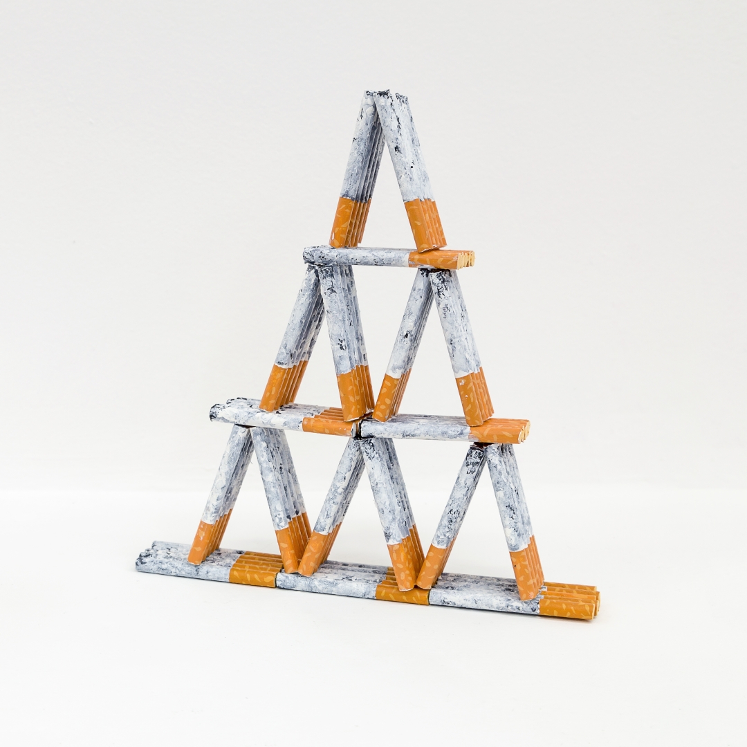 Castillo de cigarrillos. Pintura acrílica sobre madera, 30 cm x 4 cm x 30 cm, 2020