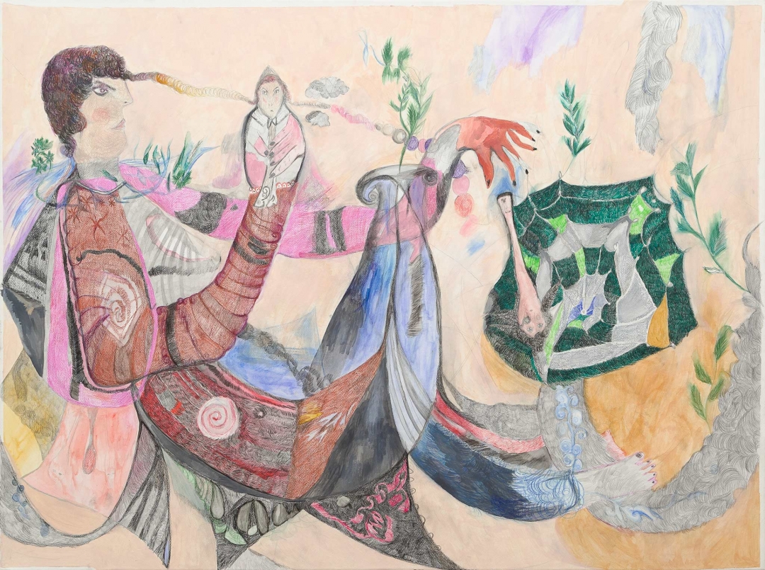 Stella Ticera. Sin título. Grafito, acuarela, lápices sobre papel maruflado en tela, 108 cm x 155 cm, 2021